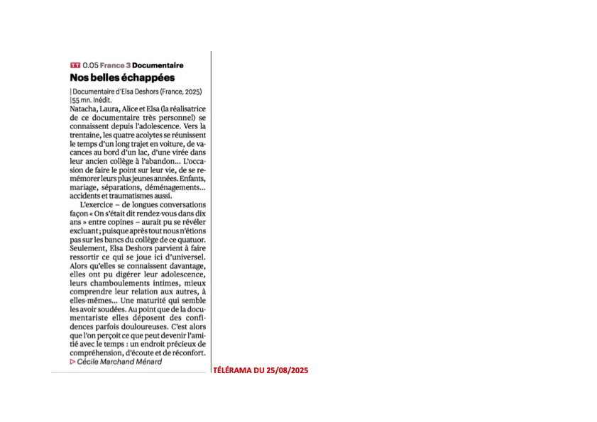 En 2007, je fête mes vingt ans et ma famille m’offre ma première caméra avec laquelle je commence à filmer mes proches. Dix ans plus tard, à la fin de l’hiver, Natacha - mon amie d’enfance, m’appelle pour me faire une révélation bouleversante. Sidérée, une multitude d’images me reviennent à l’esprit, alors je prends à nouveau ma caméra et propose à mes amies de l’époque de partir en voyage.